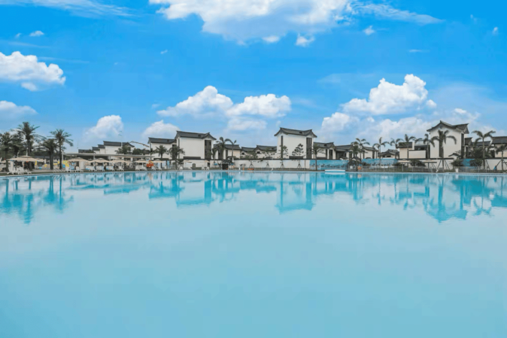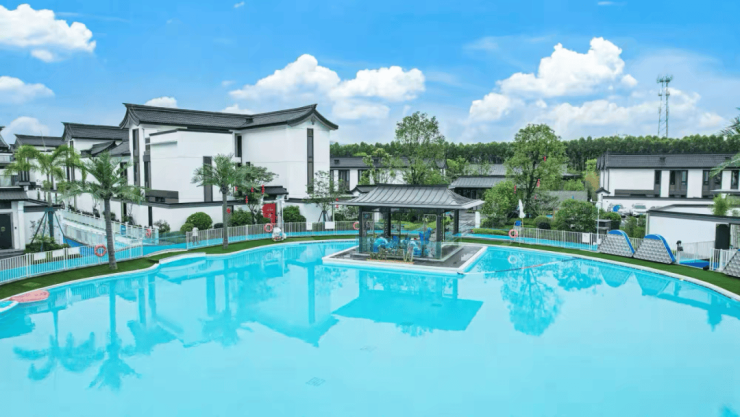 湖蝶湾·瀚园,占地12.6万平方米(189亩),总计规划了233套合院,户户朝南,并且温泉入户。