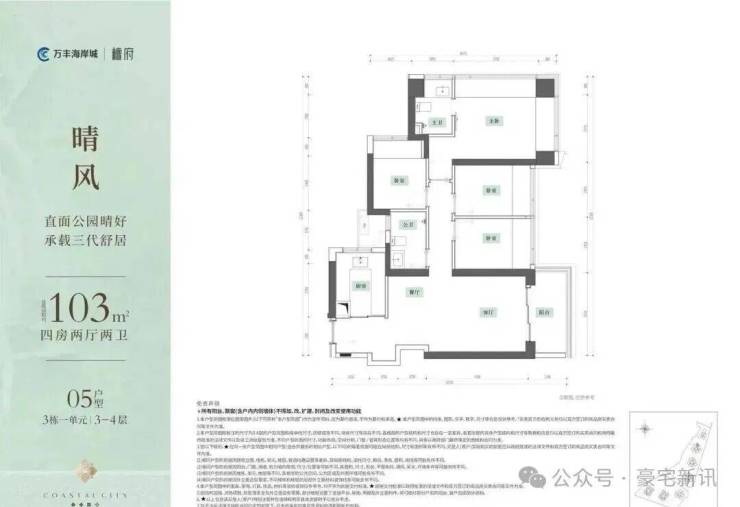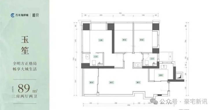 项目首推约89-169㎡3-6房进阶大宅,最高约104%实用率,同等面积多一房
