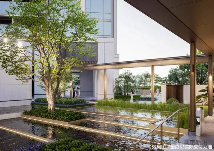 石材景墙+艺术水景+小叶紫檀组景,豪宅级归家体验。