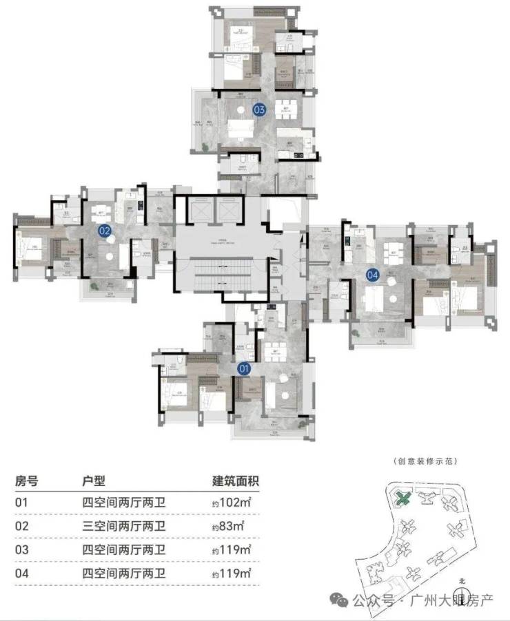 主推建面约84-118平三至四房户型,作为最新报建组团,使用率实现100%,部分户型甚至能做到107%。