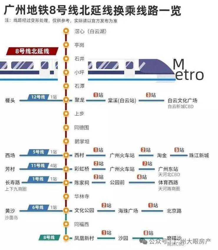 业主可以乘坐家门口的8号线,只需3站即可直达广州白云站(地铁石潭站)。