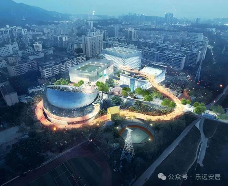 西丽文体中心:总占地面积为41968平方米, 包含室内馆、 剧院、室外项目、地下停车场、办公用房、室外绿化等。