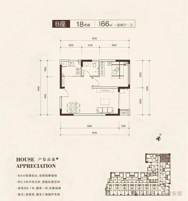 一房一厅配置,安静舒适,采光充足。空间独立性能佳。餐客厅空间合理采光充足,配有小阳台满足日常功能需求。主卧开间进深比佳,空间利用充分。明厨明卫,厨房可向生活阳台扩展提高空间实用性能。