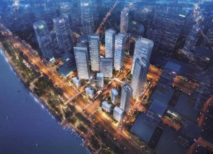 项目一线临江,搭配现代商务全玻璃幕墙,南高北低,最大程度展现一线江景。