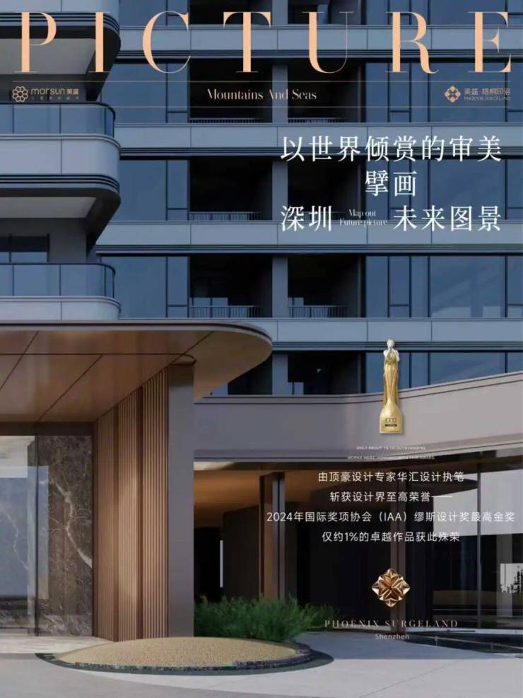 美盛·梧桐印海,荣获2024年国际缪斯设计奖金奖。以约150米凌云之姿立于深圳海拔之巅,占据的不仅是地理优势,更是一种“凌云山海的领空权”。建筑约45°的巧妙转体,实现四户分踞四角,以更极致的视野揽山海盛景。