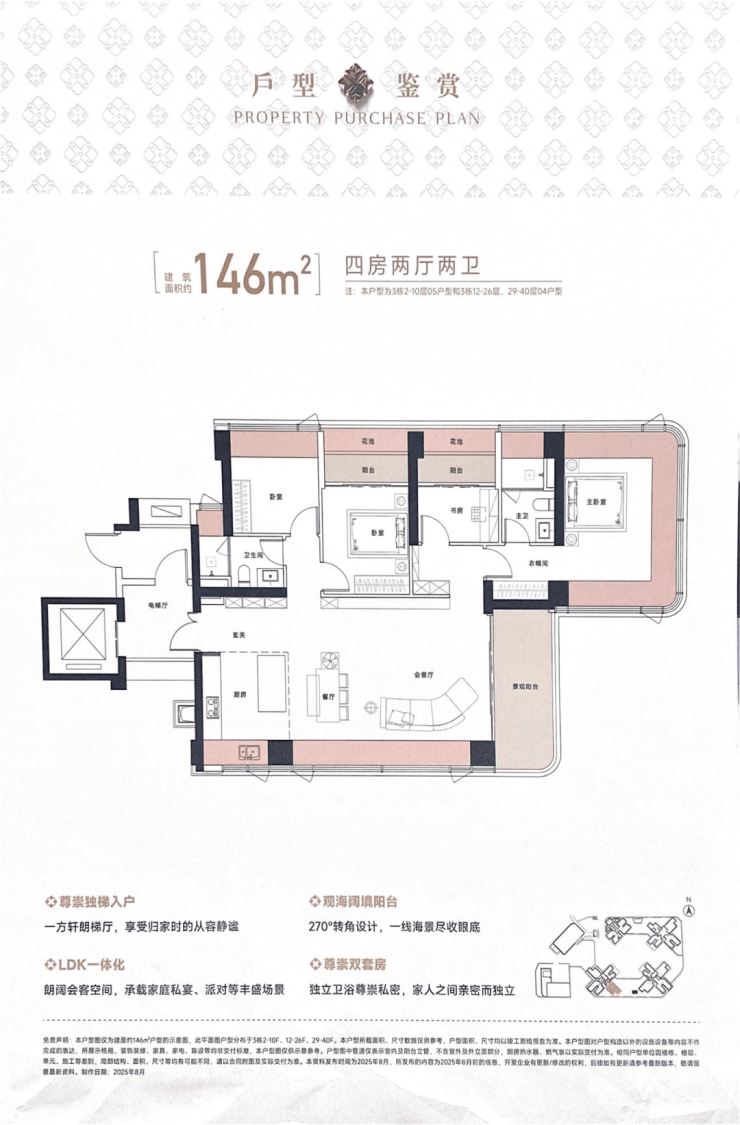 采用4梯5户(低区)与4梯4户(高区)的电梯户型设计,部分户型更享有专梯专户,保障居住私密性与尊贵感。