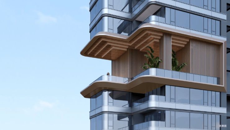 采用360°寰幕公建化立面,辅以蓝灰色双银中空LOW-E玻璃,以全玻璃幕墙与高级铝板的极简笔触、远超常规住宅的0.6黄金窗墙比,精造森幕“全面屏”的超流体美学地标。