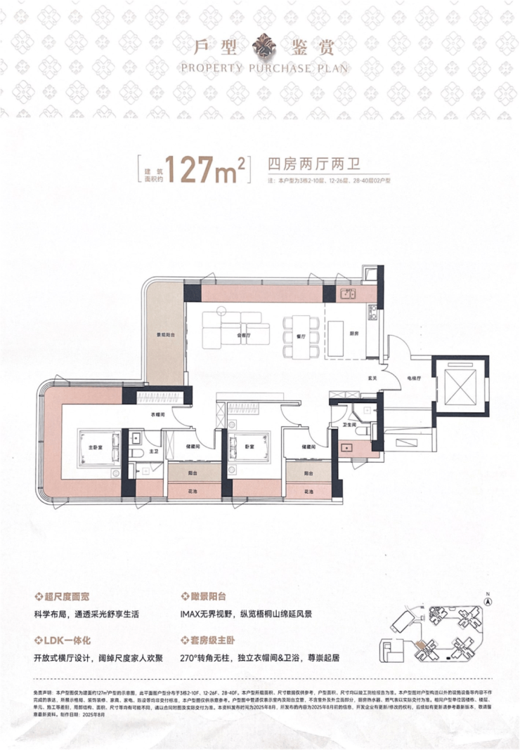 270°全景光感主卧享极致视野,步入式衣帽间及卫浴系统,给予居家酒店般奢享。