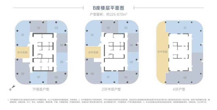 B座散售𝟓𝟎𝟎㎡起-整层𝟐𝟒𝟎𝟎㎡-连层𝟒万㎡,售价5.2-7.5万/㎡