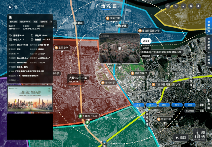 :3公里到万博,周边有番禺天河城、万达广场、海印又一城、山姆会员店、四海城等。