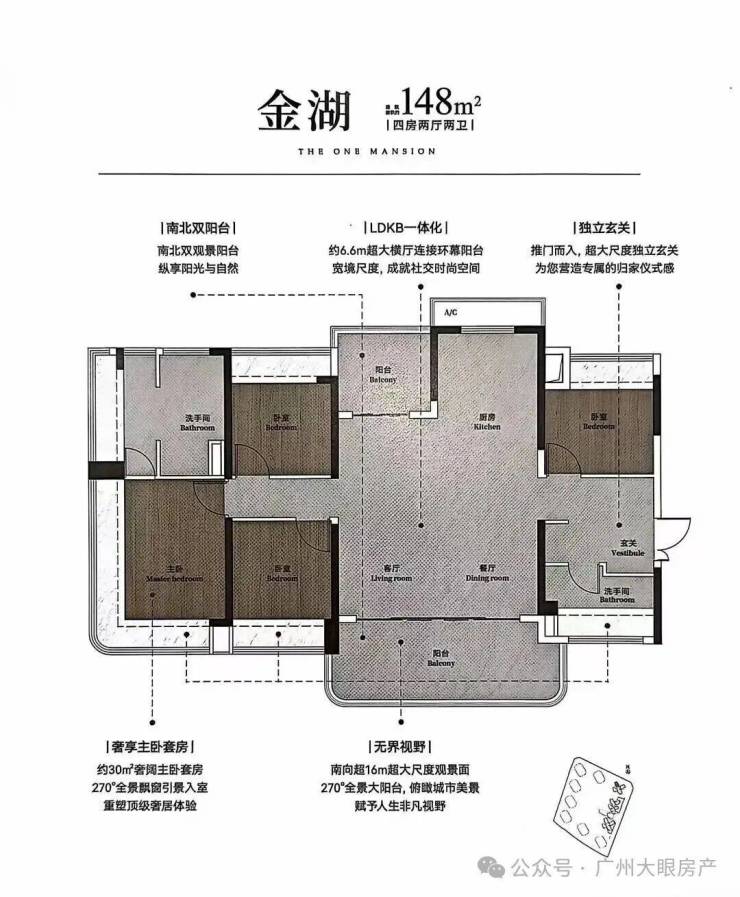 · 奢享主卧套房,搭配独立明卫和270°瞰景飘窗