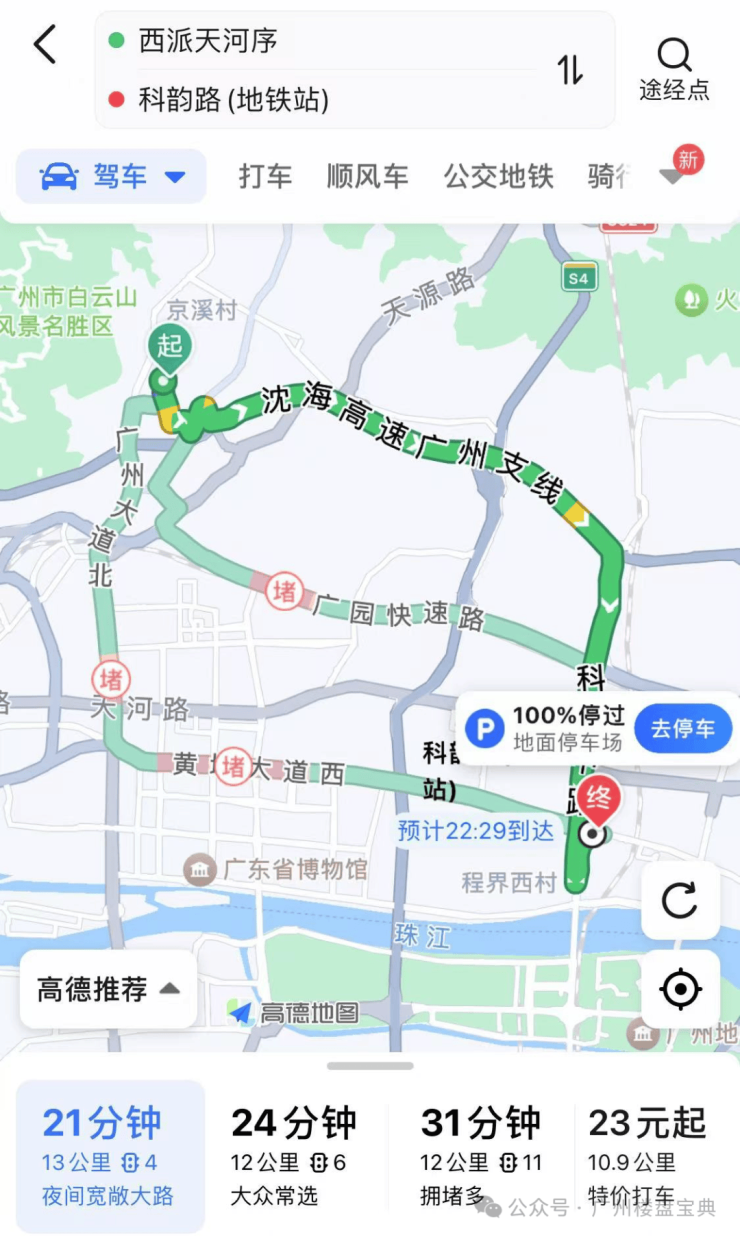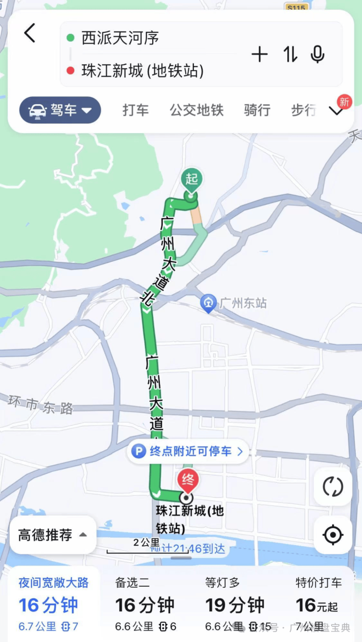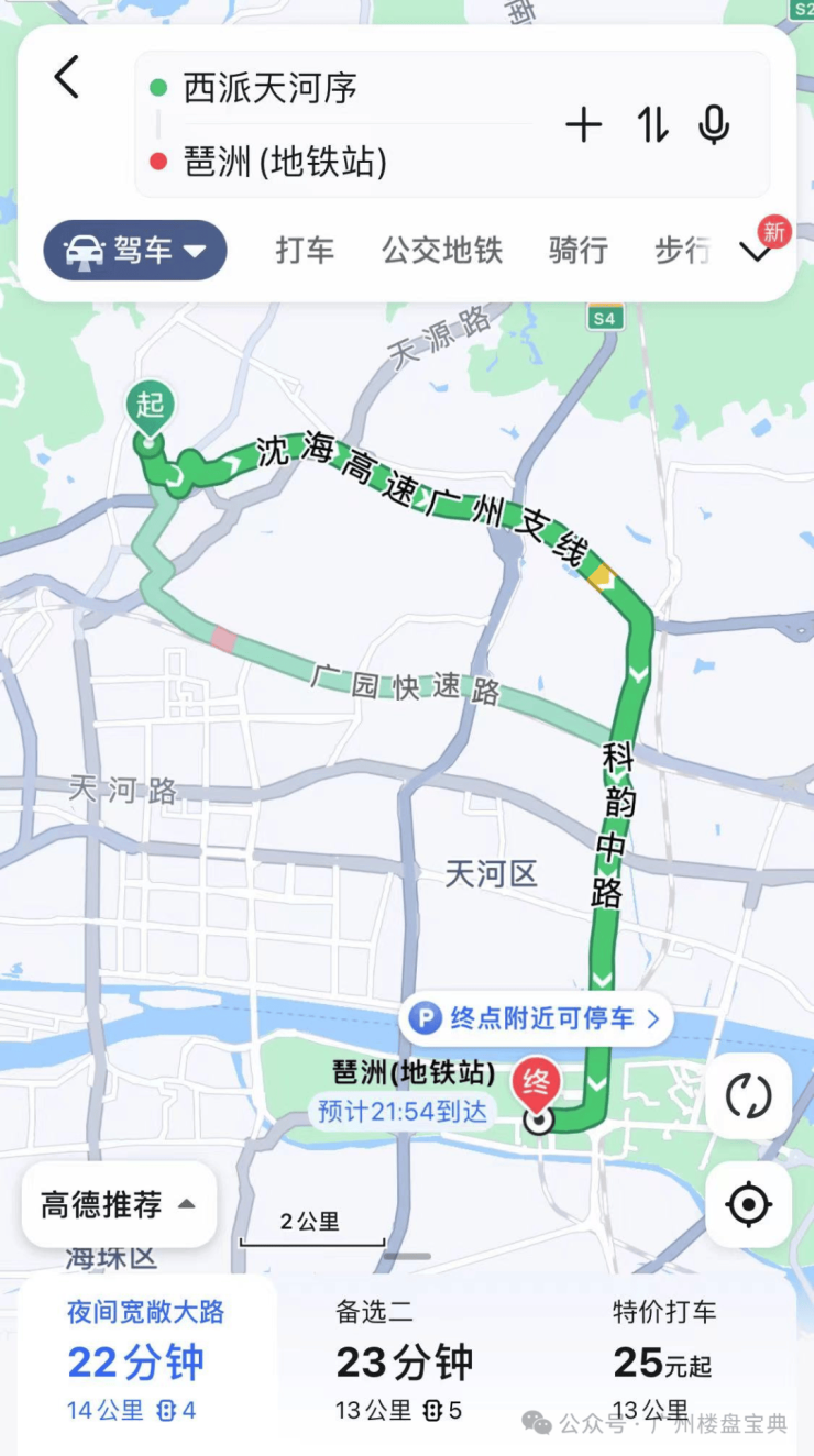 自驾的话项目位于广州中轴,去珠金琶都不远,基本可以控制在30分钟内,下面小何就给大家实测一下珠金琶需要多久: