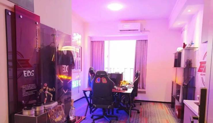 其中,约60平户型以EDG的电竞主题风格布置,模拟电竞场景,颇为出彩。
