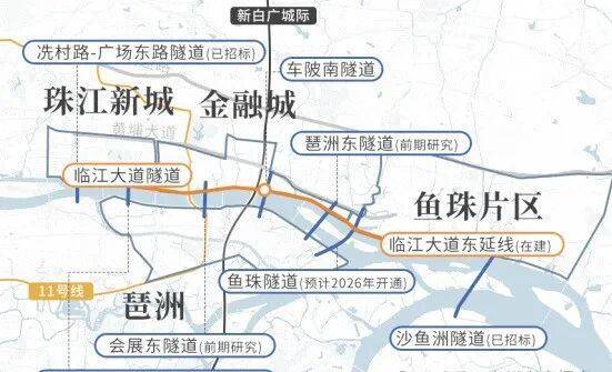 海珠(琶洲)低空飞行运营中心官宣将在年中投用,从琶洲直飞白云机场仅用9分钟。未来还将开通珠海、深圳、澳门等城际低空航线,预计日均飞行将达100-150次。与此同时,新白广城际也将在今年开通,琶洲和金融城的距离将缩短成一个站。其实,去年开通的11号线,已经实现了这一点。未来,随着琶洲与鱼珠隧道,琶洲与珠江新城隧道的开通,一江两岸将被彻底缝合。
