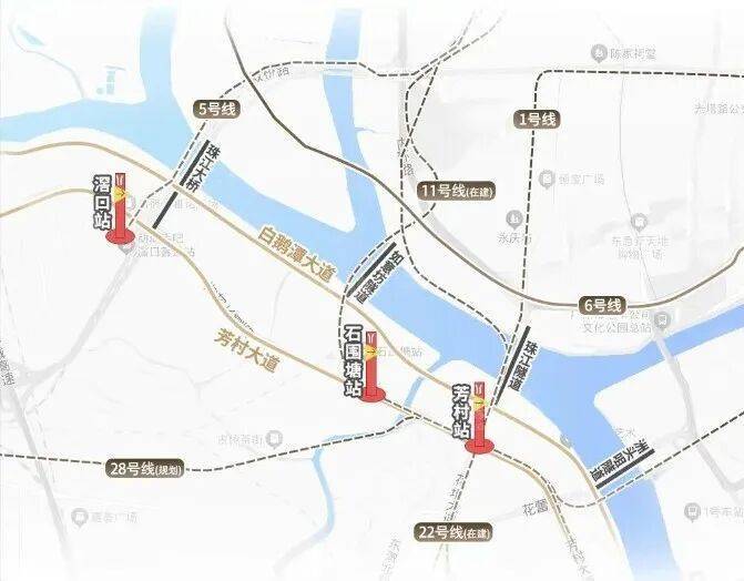 交通配套方面,项目周边规划 13 条轨道交通线路,包括高速地铁 22 号线(可直达白云机场与南沙)、快速地铁 25 号线(连接珠江新城与金融城),以及广佛江珠城际铁路。