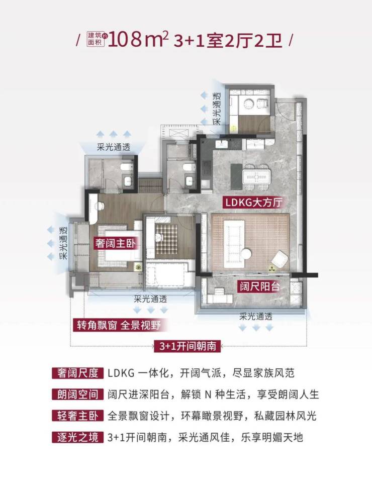 打造建面约108-190㎡智慧精装奢宅,首推建面约108㎡轻奢户型与建面约135㎡臻质户型,打破空间局限。