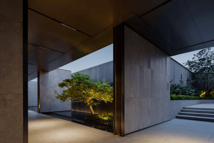 华润置地向来以“品质标杆”著称,在松湖润府的材质甄选上,更是以“适配场景、承载美学”为核心标准。为匹配项目“自然与高端共生”的定位,经过多轮比对,最终选定奥林匹亚石材供应的维纳多Vratsa®作为核心装饰材料之一,将其重点用于景观景墙、售楼处等核心场景,让天然石材成为项目质感的重要表达。