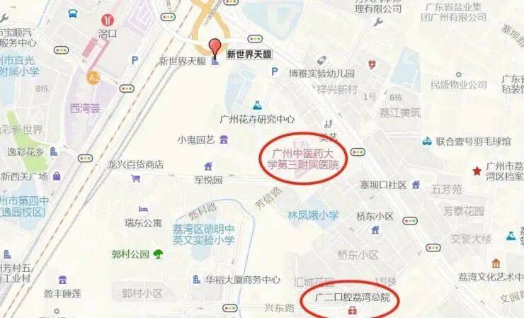 3公里内有5所三甲医院,广州中医药大学第三附属医院{芳村院区},广州医科大学附属第一医院,广东省中医院芳村医院等等。