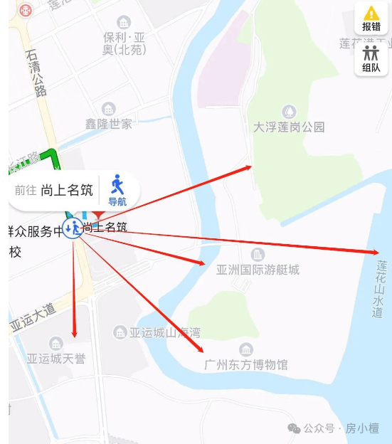周边砺江,休闲绿道环绕四周,东望大小浮莲山、远眺莲花山、狮子洋,紧邻国家4A级旅游区莲花山风景区、莲花山高尔夫球会、规划中打造岸线景观带和大型滨海生态公园的海鸥岛、亚运文化村等为广州不可多得的首席国际生态宜居地。
