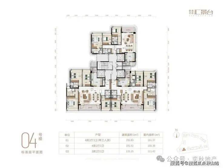 01👉192.83方四房三卫 套内161.37方