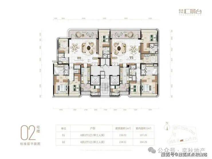 02👉238.02方四房三卫 套内197.20方