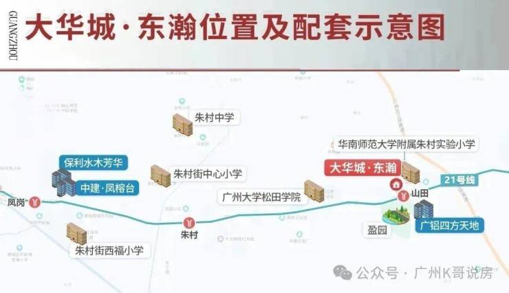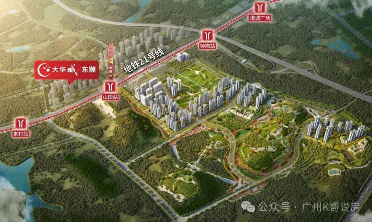 大华城——涵盖大华朱村中心城市地标(规划中)、地铁、教育、产业、商业、生态各项配套,名副其实的一生大城,未来容纳广州东约 30 万人口繁华居住地。