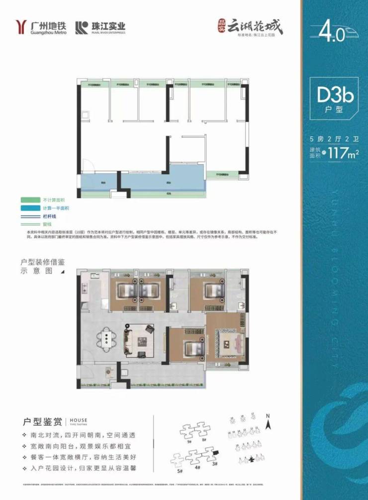 👇建面约123㎡丨南向主套五房🔘三开间朝南,大气格局🔘多功能空间,随心使用🔘双卫设计,私密性强🔘全明空间,方正实用