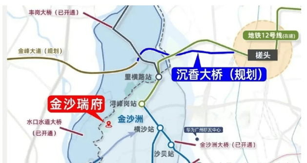 金沙瑞府坐拥“双地铁+八桥一环”立体路网,通达全城毫无压力。地铁6号线浔峰岗站步行约800米,直达天河、越秀;在建的12号线(预计2026年通车)浔峰岗站仅2站之遥,未来可无缝换乘8、13、14、2、11号线,形成黄金十字枢纽。地面交通更为强悍:八大跨江桥梁环绕——已通车的金沙洲大桥、大坦沙大桥,加上在建的同心桥、规划中的沉香大桥(预计2027年开工),未来从项目出发5公里直达白云新城CBD。环城高速入口10分钟车程,30分钟内可达广州南站、白云机场。随着沉香大桥推进,区域“断头路”困局将彻底打破,金沙洲不再是“孤岛”,而是广佛融合的桥头堡。