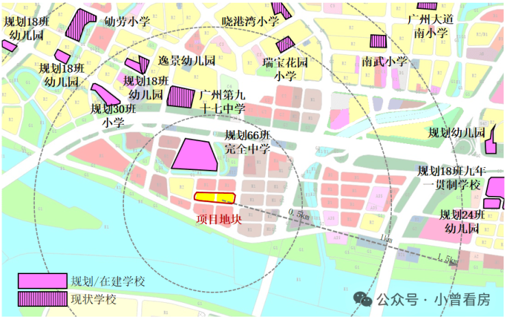 1千米范围内有广州第九十七中学,1.5千米范围内有南武小学等,距离地块