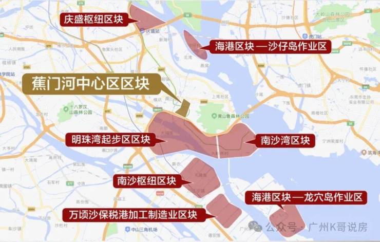 从房地产视角,大体分:明珠湾,金州—焦门,南沙湾,黄阁,庆盛,万顷沙。