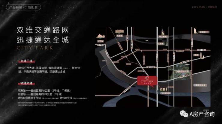 自驾的话,附近还有洛溪大桥、环城高速和广州大道南等,开车到琶洲、珠城和金融城等重点板块十几分钟,相当方便。