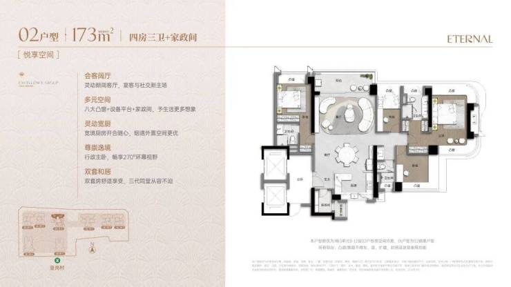 为品味家庭量身打造。无界社交奢厅、开合式U型厨房、MAX观景阳台,270°观景书房与环幕主卧,尽享风光生活。