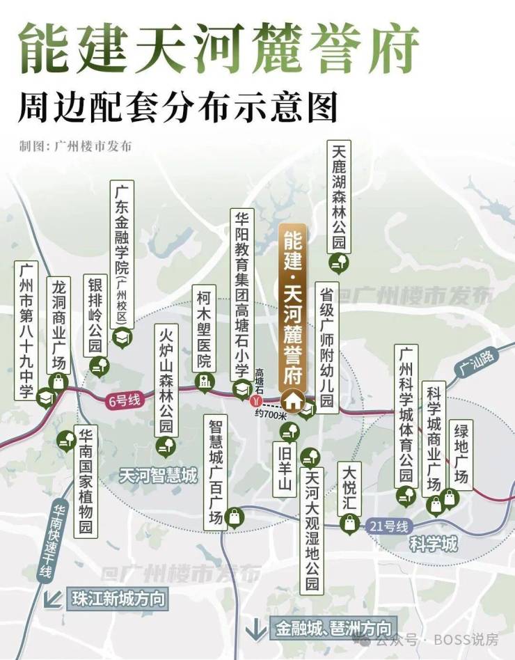 项目到地铁6号线高塘石站直线距离约700米(来源:百度地图测距),1站换乘,3首劲歌金曲的时间即可前往珠江新城CBD。