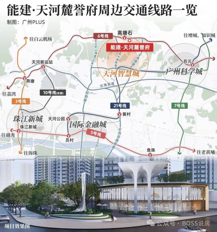 项目位于天河区的天河智慧城(CTD),距离地铁6号线高塘石站约700米。