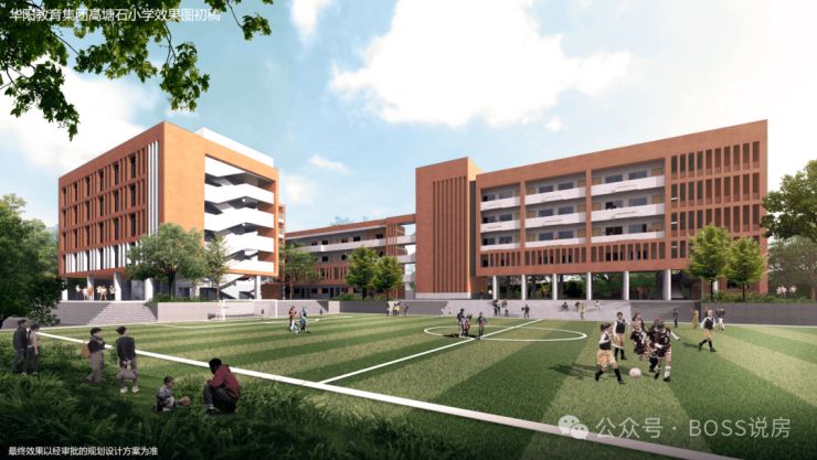 项目旁边是广幼师附幼儿园新园区,从项目的效果图来看,幼儿园和小区距离非常近。