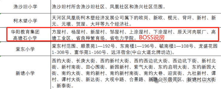小学方面,附近只有高塘石小学,学校于2023年8月10日就正式加入华阳教育集团,并正式更名为“广州市天河区华阳教育集团高塘石小学”,由原华阳小学向其派出副校长和骨干教师团队进驻,同时该校也将安排教师到华阳小学跟岗学习。