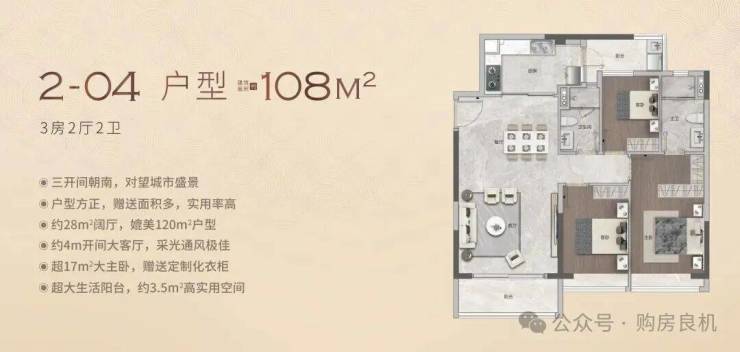 越禧府-2号楼04户型108㎡-大三房 户型方正 视野开阔大客厅大房间