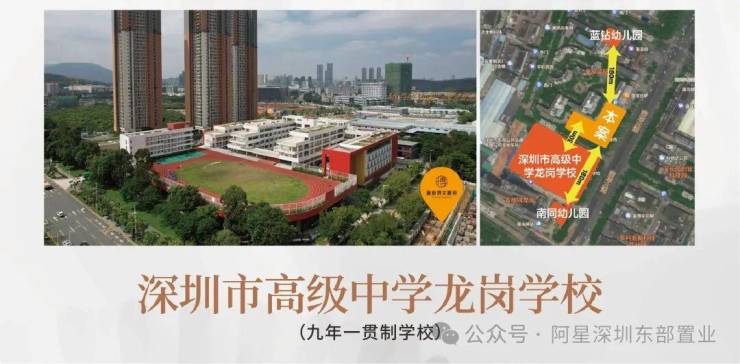 对街即是深圳市高级中学龙岗学校(九年一贯制学校),南同幼儿园、蓝钻幼儿园步行约180米即可到达,12年全龄教育就在家门口,近距离呵护孩子成长。