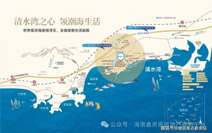 清水湾·智汇城距海边2.2公里,近海不临海。处于清水湾最宜居、舒适度最高的核心位置。智汇城项目规划用地3200亩,总投资200亿元。是海南省人民政府支持建设的一座融休旅、居住、产业三位一体的多功能新区。