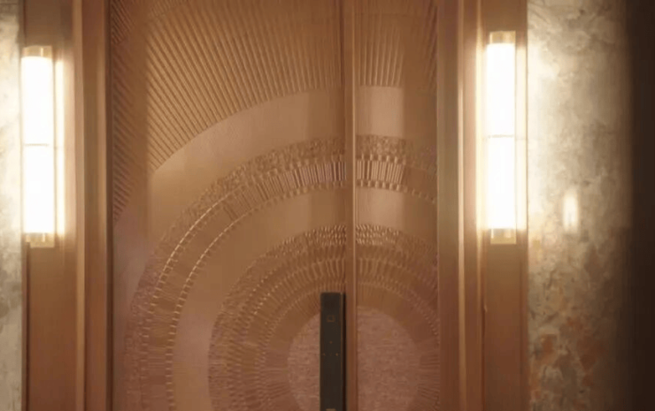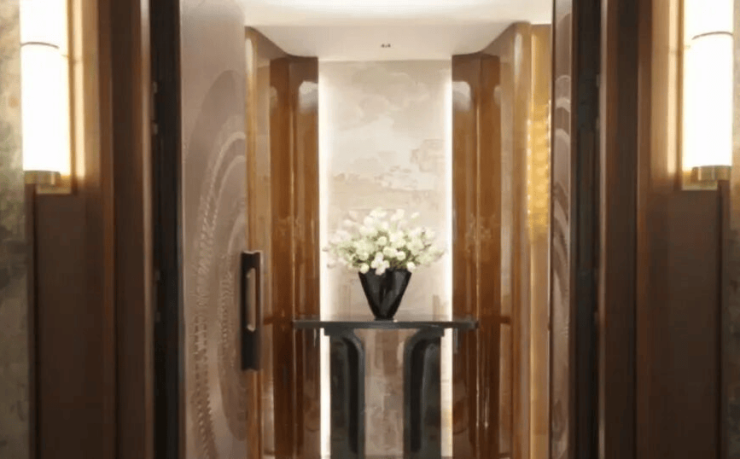 约257㎡瞰江云端平墅,遵循四进归家礼序:登门望府-游园望海-华堂归家-尊耀入墅,以“王府大门形制"为灵感,设计高端仪式感大门;社区内部以形制化中轴,营造极具序列仪式感的游园归家之旅;星级酒店式归家大堂,地面艺术拼花;臻造两梯两户尊贵梯户比,私密而尊崇;遵循高门府阔的规制,缔造殿堂级归家生活体验,彰显圈层家族的尊贵荣耀。