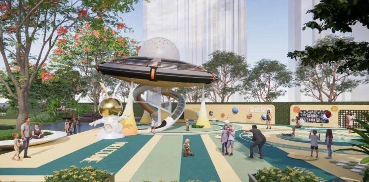 门口公园规划四大高定主题生活场,内部打造四大主题休闲空间,为你定制一半公园一半家,在家就像在度假。