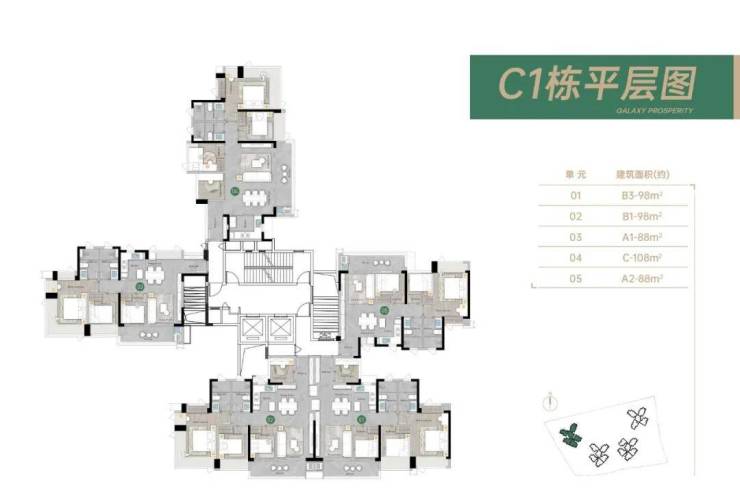 产品以主打刚需,有88㎡、98㎡、108㎡三至四房