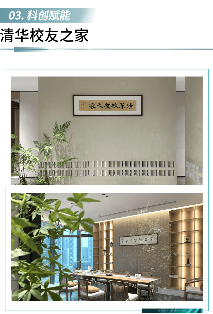1200㎡清华校友之家,主要面向清华校友、入驻企业家及其他重要宾客开放,通过圈层社交积累人脉,实现资源的置换、互补与联合。