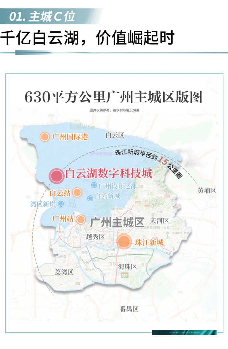 白云湖数字科技城,立足广州主城区,与珠江新城直线距离仅15公里;