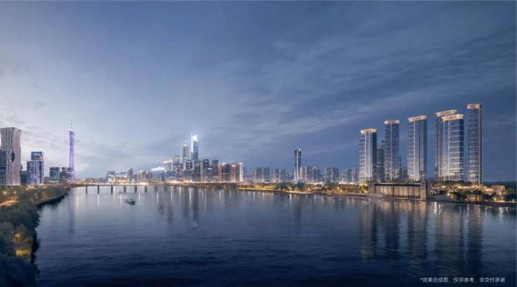 建筑立面采用湾流曲线幕墙体系,搭配9.9米尊贵塔冠,以优美的曲线呼应珠江流水的韵律。项目总高度为150~180米,为珠江两岸新添高端住宅,刷新景观天际线。
