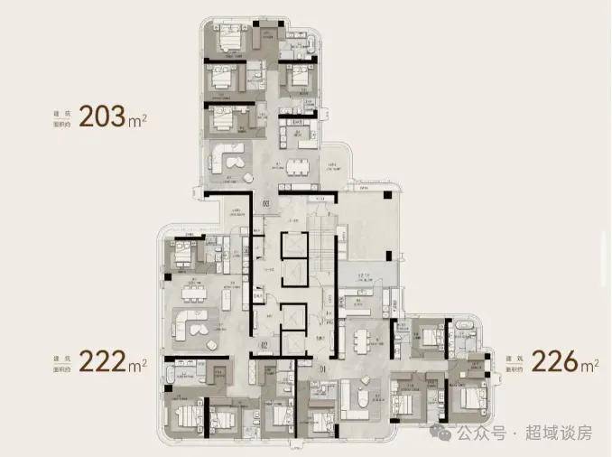 户型多样:提供约203㎡、222㎡、227㎡等多种户型。例如,203㎡户型拥有5.1米×11.3米的客餐厅和4个开间朝西南,可望江、琶洲及广州塔。