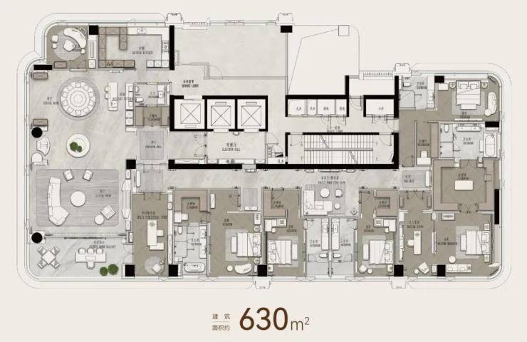 设计与私密:采用“一层一户,3梯1户”的配置,保证了极致的私密性与归家仪式感。工人梯独立动线设计,进一步保障了主人的生活私密。