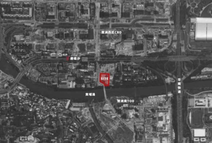 琶洲·樾|华樾位于广州 CBD 黄金三角之一的琶洲西区核心腹地,场地邻近地铁 8 / 18 号线磨碟沙站和新光、华南双快线,完善立体的路网高效连接城市中心。南侧毗邻黄埔涌滨江生态带,与琶洲南TOD隔江对望,北面为琶洲CBD企业总部摩天集群,天然拥有滨江一线与繁华城脉双重景观资源。
