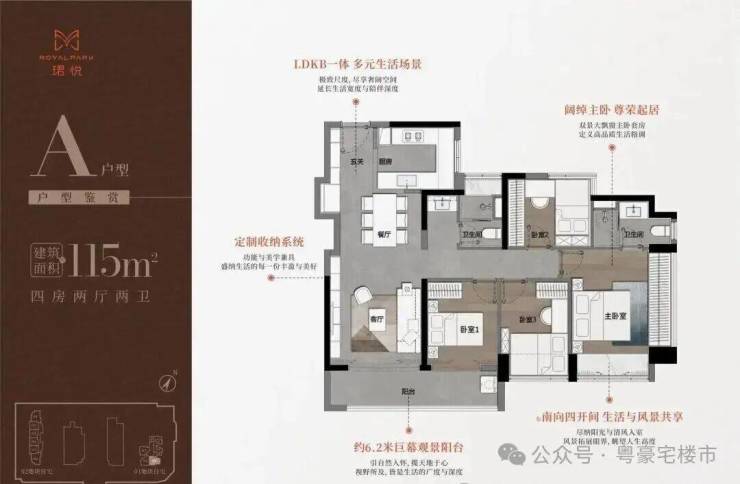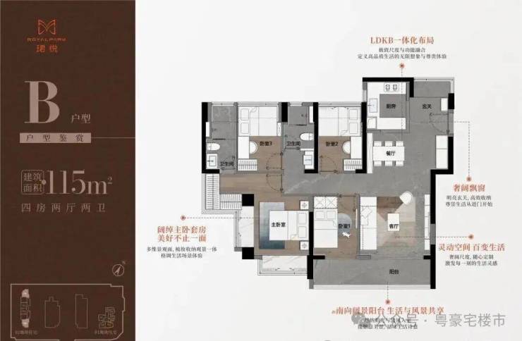 115㎡奢阔4房,总价810万起,有俩个户型仅可售85套