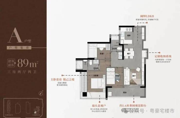 A户型东南向仅29套,拥有5.6米的大阳台,使用率92%